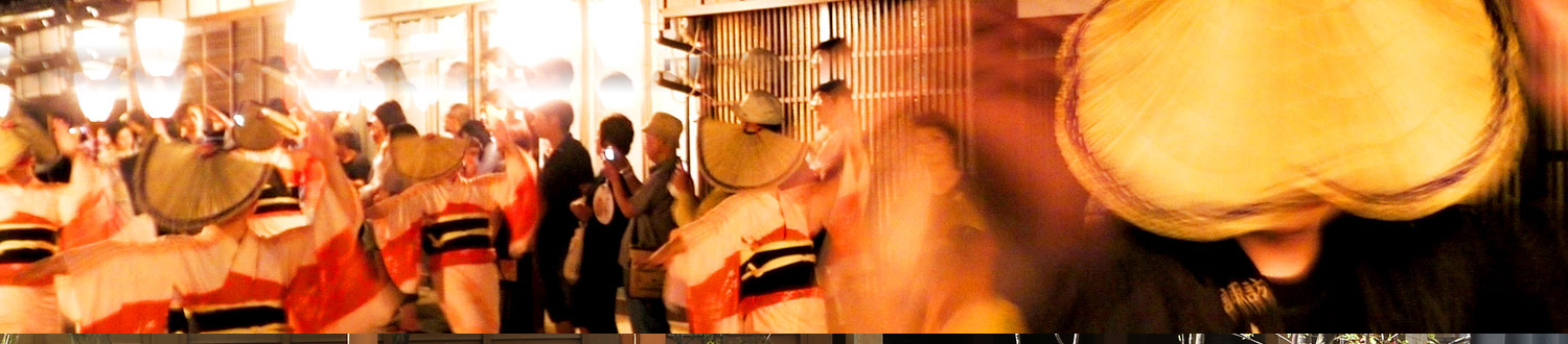 たいこや笛の囃子を鳴らし、はっぴ姿の若者の力によって三角形の船形万燈を豪快に曳き回すお祭りです。引き手も観客も一緒になって熱狂できる様はまさに魚津の夏の風物詩!